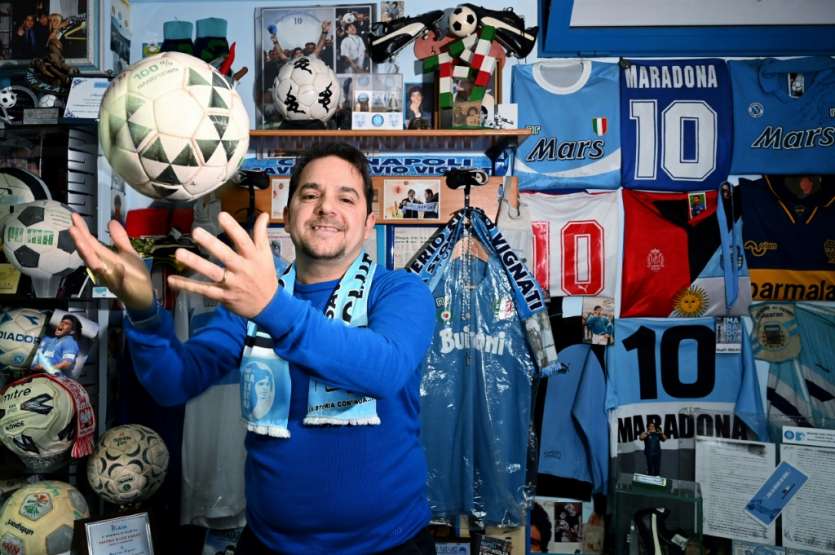 - © 2019 AFP | Crée le 24.12.2019 à 02h19 | Mis à jour le 24.12.2019 à 02h25ImprimerMassimo Vignati joue avec le ballon du match Naples-Juventus en mars 1990 dans son musée "Maradona", le 20 novembre 2019 à Naples Alberto PIZZOLI-AFP