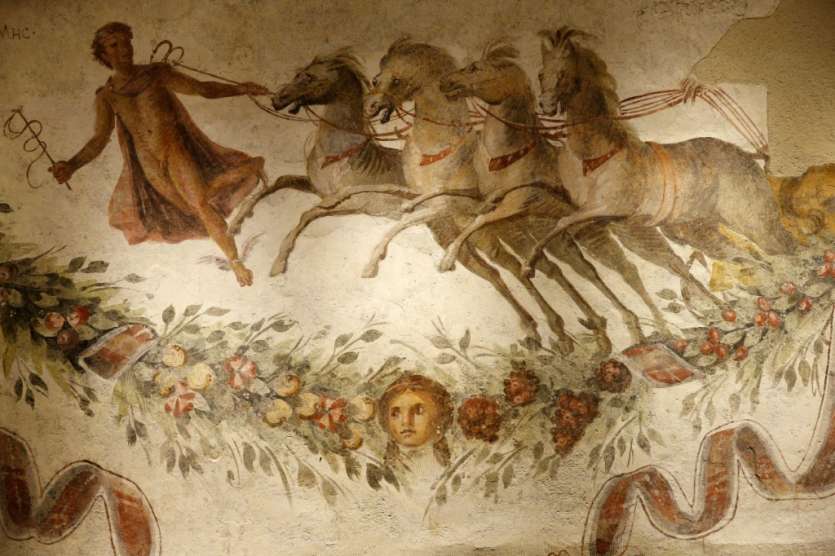 Autre joyau, l'extraordinaire hypogée --tombe creusée dans le sol-- découvert par hasard en 1937 par un paysan dans la région de Tyr (sud) et dont les fresques restaurées sont inspirées de la mythologie grecque -- supplice de Tantale ou Priam implorant à genoux Achille de lui rendre le corps d'Hector.