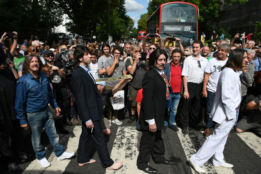 - © 2019 AFP | Crée le 05.10.2019 à 17h18 | Mis à jour le 05.10.2019 à 17h20ImprimerDes sosies traversentle passage piétons d'Abbey Road, rendu célèbre par les Beatles 50 ans plus tôt, le 8 août 2019 à Londres Daniel LEAL-OLIVAS-AFP/Archives