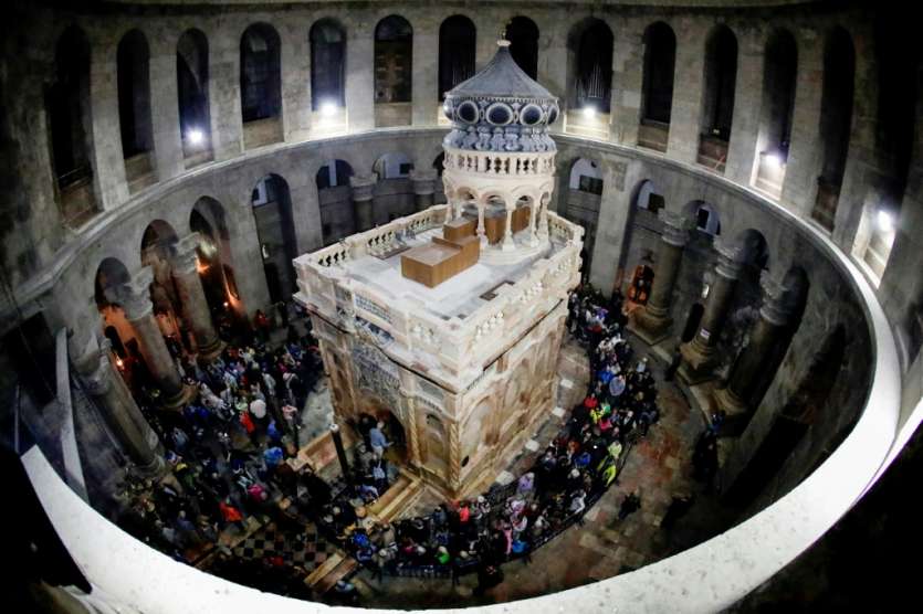 Débuté en mai 2016, le vaste chantier de rénovation a permis de consolider l'édicule de marbre qui surplombe le tombeau --entièrement démonté par des spécialistes grecs puis reconstruit à l'identique-- et de redonner ses couleurs d'origine au lieu le plus saint du christianisme.