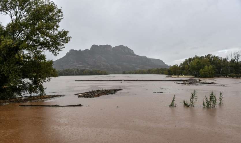 - © 2018 AFP | Crée le 01.11.2018 à 20h42 | Mis à jour le 01.11.2018 à 20h45ImprimerLa rivière Argens, sortie de son lit, à Roquebrune-sur-Argens, le 1er novembre 2018 Yann COATSALIOU-AFP