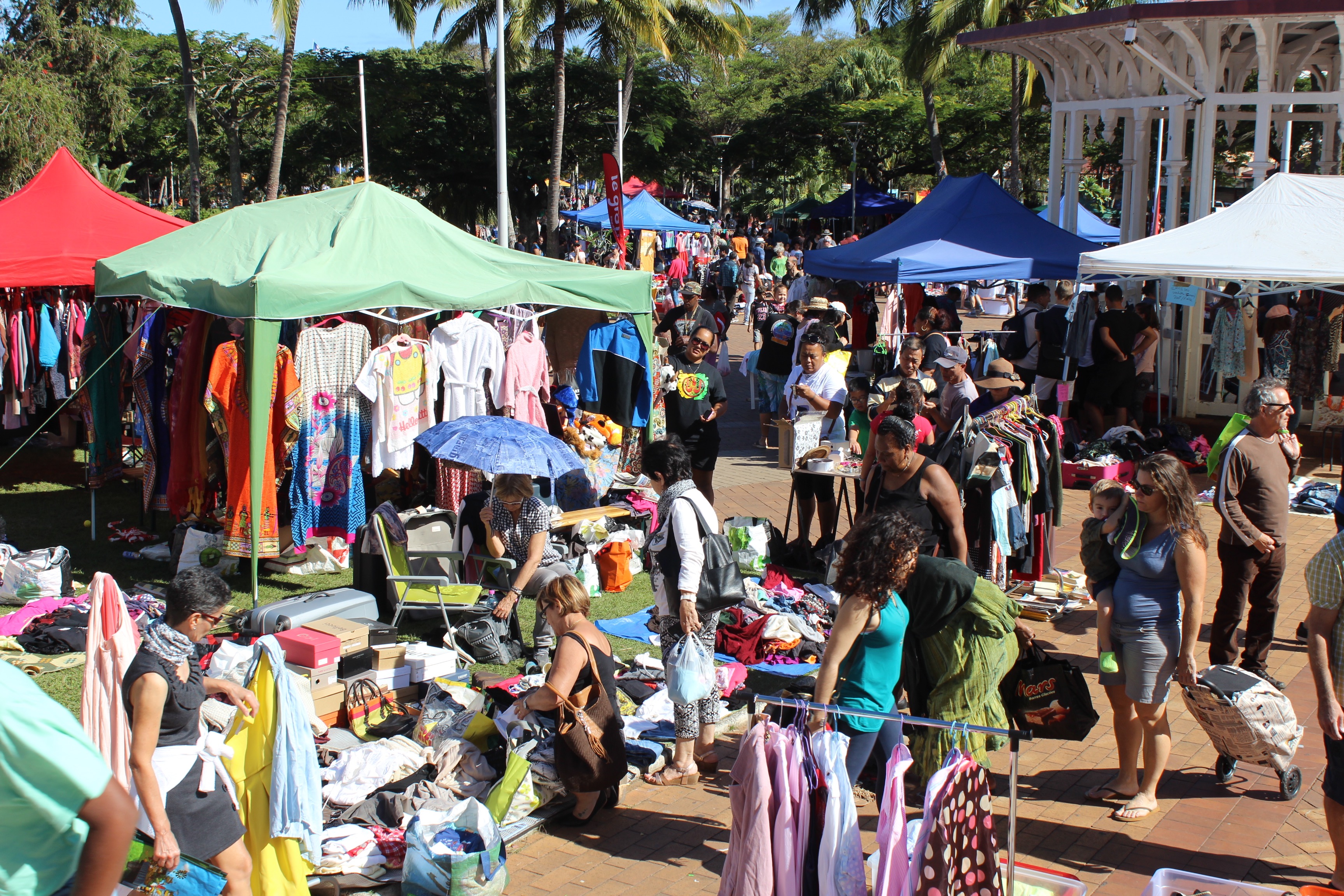 Affluence des grands jours ce matin sur la place des Cocotiers à l'occasion du vide-greniers mensuel du Gratuit.