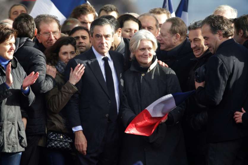 - © 2017 AFP | Crée le 14.03.2017 à 20h53 | Mis à jour le 14.03.2017 à 20h55ImprimerFrançois Fillon entouré de sa fille Marie (g) et de sa femme Penelope (d), devant la rassemblement de dizaines de milliers de ses partisans place du Trocadéro à Paris le 5 mars 2017 GEOFFROY VAN DER HASSELT-AFP/Archives