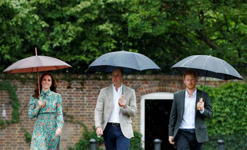 Alors que les médias ont multiplié émissions et dossiers sur la toujours très populaire princesse de Galles, Harry, William et sa femme Kate ont visité sous une pluie battante et dans l'intimité, en début d'après-midi, le jardin blanc éphémère créé à sa mémoire au palais de Kensington, où elle résidait à Londres.