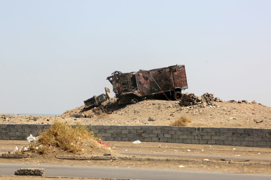 - © 2016 AFP | Crée le 20.10.2016 à 08h06 | Mis à jour le 20.10.2016 à 08h10ImprimerUn véhicule détruit dans le port de Hodeihah, le 13 octobre 2016 au Yémen STRINGER-AFP/Archives