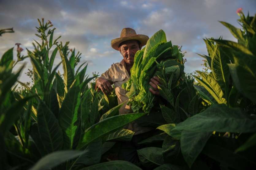 - © 2018 AFP | Crée le 02.03.2018 à 17h01 | Mis à jour le 02.03.2018 à 17h05ImprimerUn paysan cubain récolte des feuilles de tabac dans une plantation de San Juan y Martinez, le 24 février 2018 à Pinar del Río Yamil LAGE-AFP