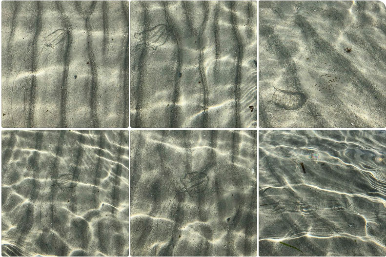 - | Crée le 13.07.2018 à 17h05 | Mis à jour le 13.07.2018 à 17h05ImprimerLes méduses en question, prises en photo dimanche dernier à l'îlot Ténia. L'auteur des clichés indique « qu'il y en avait beaucoup dans l'eau et des dizaines échouées encore vivantes. Elles sont invisibles dans l'eau ou presque, on les voit grâce à leur ombre, les filaments sont à 100 % invisibles ». Photos Chris CH