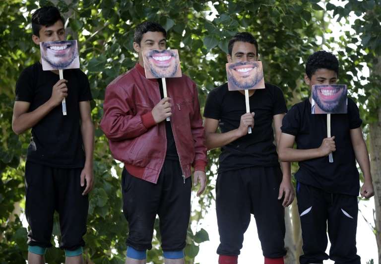 - © 2016 AFP | Crée le 01.07.2016 à 15h46 | Mis à jour le 01.07.2016 à 15h50ImprimerDes jeunes Syriens répètent une pièce de théâtre qui exprime le mal-être des réfugiés au Liban, le 22 juin 2016 à Bar Elias