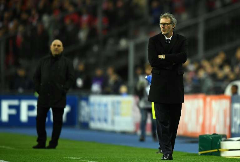 - © 2016 AFP | Crée le 29.04.2016 à 21h03 | Mis à jour le 29.04.2016 à 21h05ImprimerL'entraîneur du PSG Laurent Blanc (d) suit le match face à Lille en finale de la Coupe de la Ligue, le 23 avril 2016 au Stade de France FRANCK FIFE-AFP/Archives