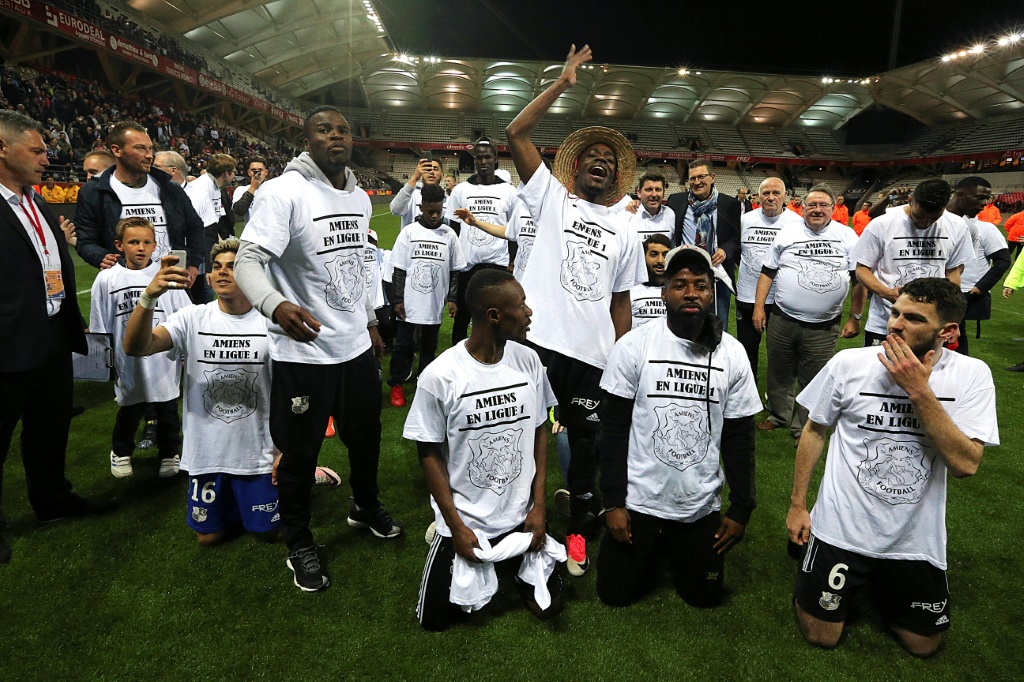 - © 2017 AFP | Crée le 23.06.2017 à 03h21 | Mis à jour le 23.06.2017 à 03h25ImprimerLes joueurs d'Amiens en liesse à l'issue de leur montée dans l'élite, le 19 mai 2017 sur la pelouse de Reims FRANCOIS NASCIMBENI-AFP/Archives