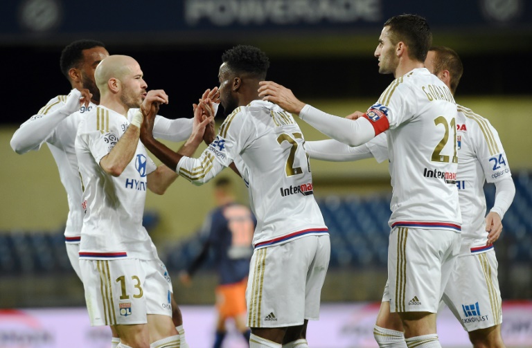 - © 2016 AFP | Crée le 16.04.2016 à 01h14 | Mis à jour le 16.04.2016 à 01h20ImprimerMaxwell Cornet (c), félicité par ses coéquipiers après un but face à Montpellier, le 8 avril 2016 à la Mosson ANNE-CHRISTINE POUJOULAT-AFP/Archives