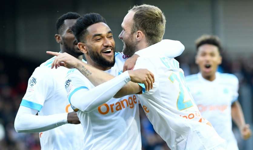 - © 2018 AFP | Crée le 12.05.2018 à 07h51 | Mis à jour le 12.05.2018 à 07h55ImprimerL'attaquant de Marseille Valère Germain (d) buteur lors du déplacement à Guingamp le 11 mai 2018 Fred TANNEAU-AFP