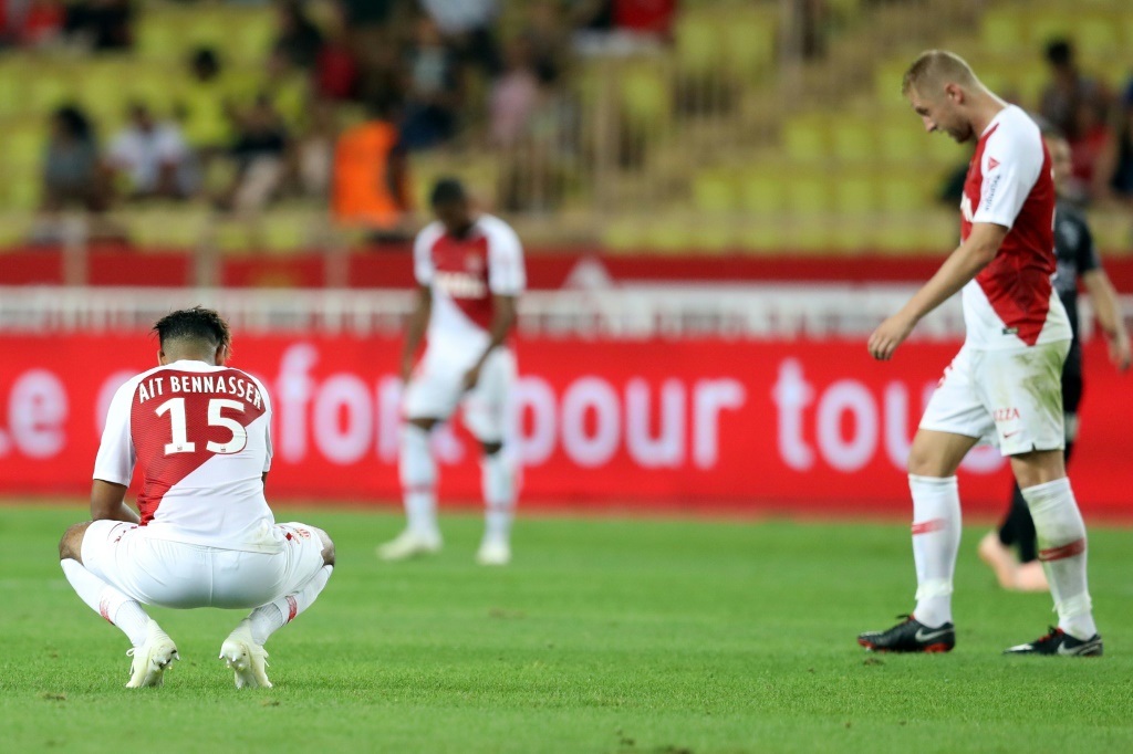 - © 2018 AFP | Crée le 22.09.2018 à 07h55 | Mis à jour le 22.09.2018 à 08h00ImprimerLa déception des joueurs de Monaco après le match nul concédé face à Nîmes, le 21 septembre 2018 au stade Louis-II VALERY HACHE-AFP