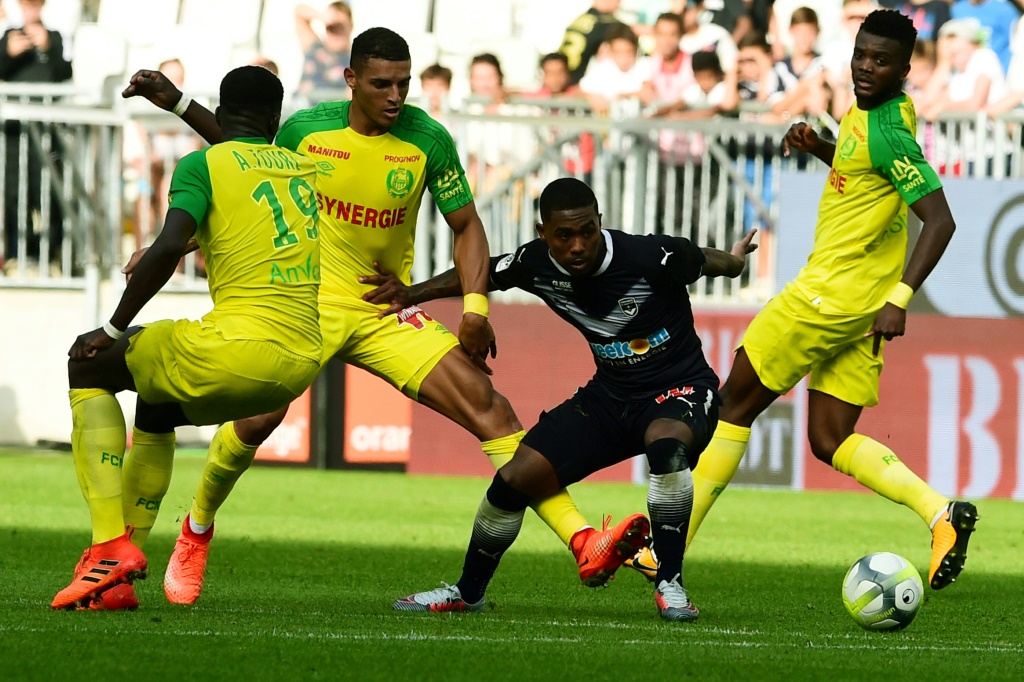 - © 2017 AFP | Crée le 16.10.2017 à 02h35 | Mis à jour le 16.10.2017 à 02h40ImprimerL'attaquant de Bordeaux Malcom (c) à la lutte avec la défense nantaise, le 15 octobre 2017 à Bordeaux NICOLAS TUCAT-AFP