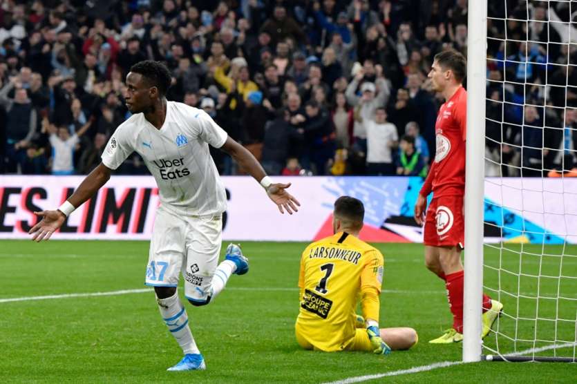 - © 2019 AFP | Crée le 30.11.2019 à 09h24 | Mis à jour le 30.11.2019 à 09h30ImprimerLe Marseillais Bouna Sarr ouvre la marque contre Brest, le 29 novembre 2019 au Stade Vélodrome GERARD JULIEN-AFP
