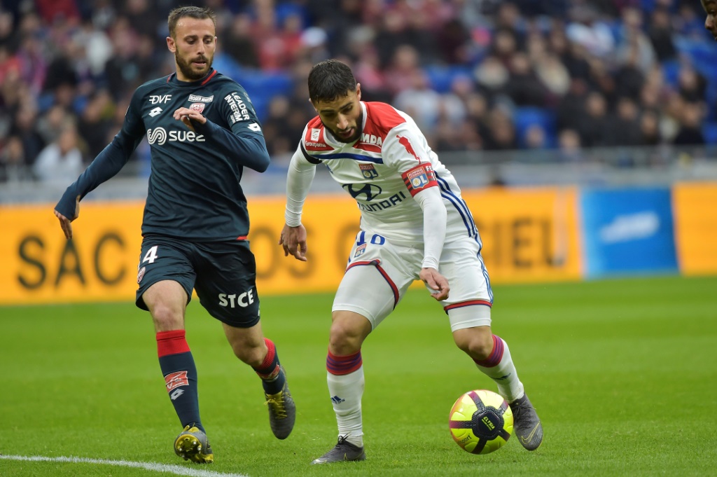 - © 2019 AFP | Crée le 07.04.2019 à 03h59 | Mis à jour le 07.04.2019 à 04h05ImprimerL'attaquant de l'OL Nabil Fékir (d) devant le milieu de Dijon Jordan Marié, le 6 avril 2019 à Décines-Charpieu, près de Lyon ROMAIN LAFABREGUE-AFP