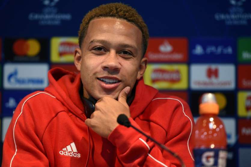 - © 2018 AFP | Crée le 20.09.2018 à 05h47 | Mis à jour le 20.09.2018 à 05h50ImprimerLe joueur de Lyon Memphis Depay en conférence de presse à Manchester le 18 septembre 2018 Oli SCARFF -AFP