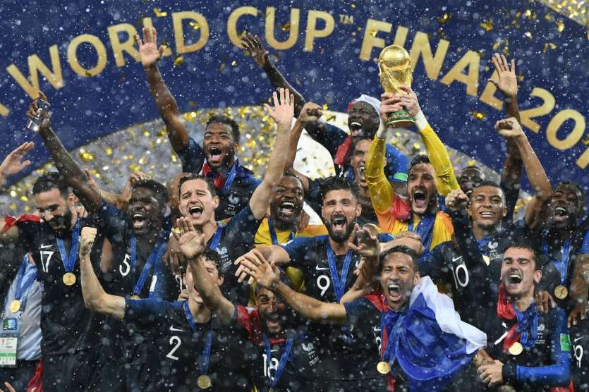- © 2018 AFP | Crée le 08.09.2018 à 20h42 | Mis à jour le 08.09.2018 à 20h45ImprimerL'équipe de France de football en liesse après avoir remporté le Mondial-2018 au détriment de la Croatie au stade Loujniki à Moscou, le 15 juillet 2018 FRANCK FIFE -AFP/Archives
