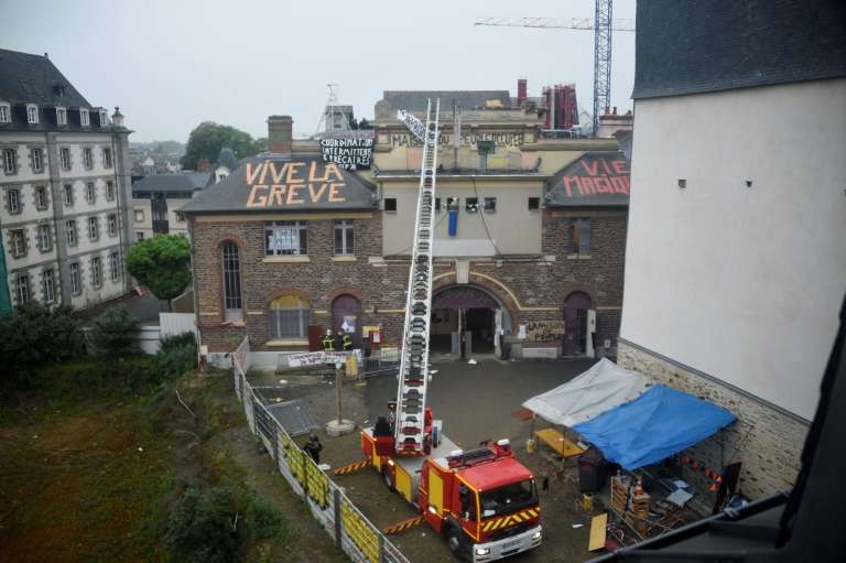 Les forces de l'ordre évacuent rapidement une petite moitié des occupants mais le reste se réfugie sur le toit. "Rennes, debout, soulève-toi!", crient les manifestants au-dessus des rues encore désertes du centre-ville.