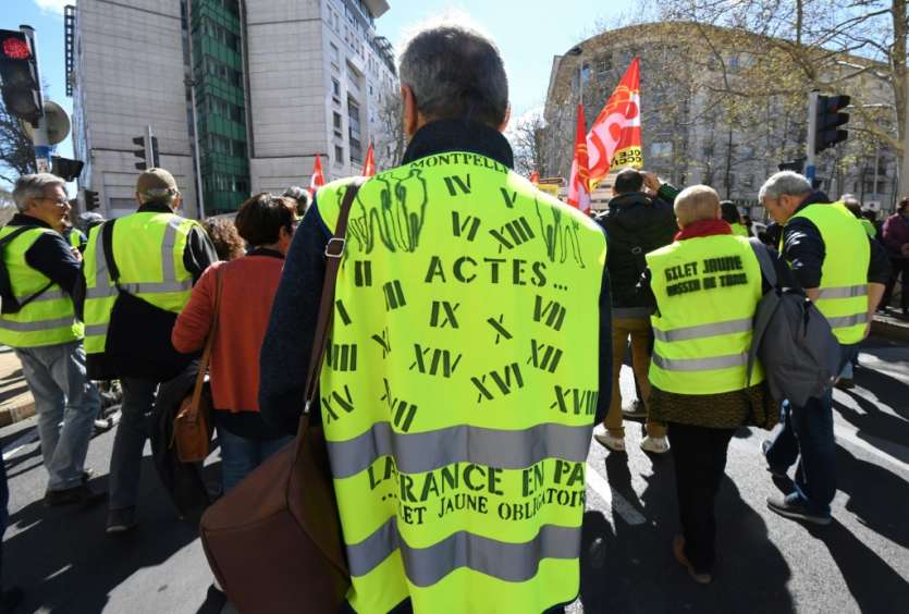- © 2019 AFP | Crée le 11.05.2019 à 13h41 | Mis à jour le 11.05.2019 à 13h45ImprimerUn "gilet jaune" participe à une manifestation le 19 mars 2019 à Montpellier Pascal GUYOT-AFP/Archives