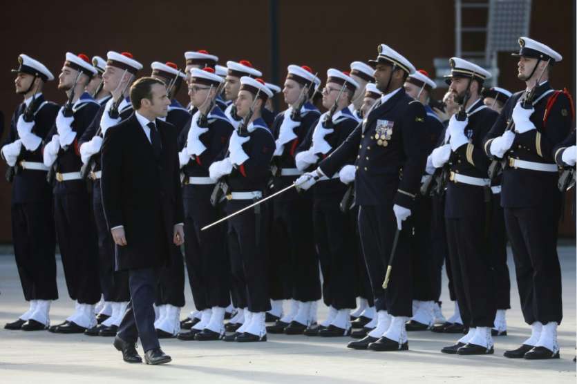 - © 2019 AFP | Crée le 18.01.2019 à 08h28 | Mis à jour le 18.01.2019 à 08h30ImprimerEmmanuel Macron passe en revue des marins lors de la cérémonie des voeux aux armées à la BA 101 de Toulouse-Francazal, le 17 janvier 2019 Ludovic MARIN-AFP/Archives