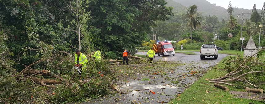 En face de la mairie de Poindimié, un arbre était tombé sur la route qui vient d'être dégagée.