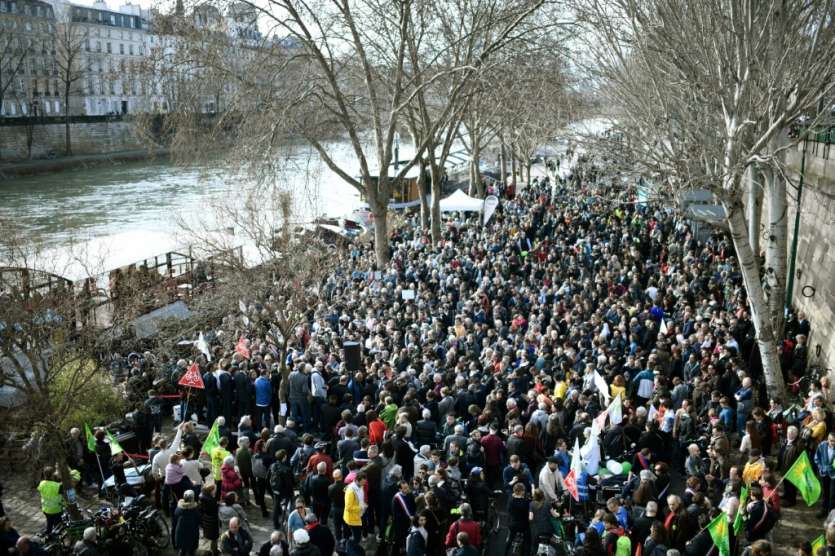 - © 2018 AFP | Crée le 20.03.2018 à 22h31 | Mis à jour le 20.03.2018 à 22h35ImprimerUne manifestation à Paris le 10 mars dernier pour garder les voies sur berge fermées à la circulation STEPHANE DE SAKUTIN-AFP/Archives
