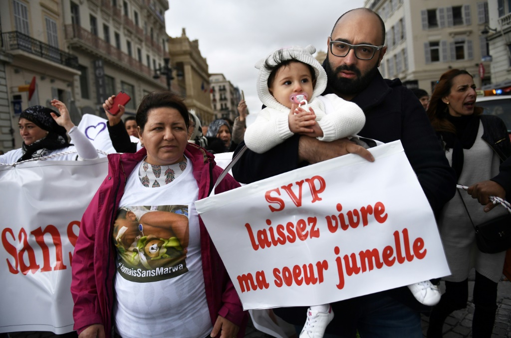 - © 2017 AFP | Crée le 09.03.2017 à 01h25 | Mis à jour le 09.03.2017 à 01h30ImprimerSacha, 15 mois, dans les bras de son père Mohamed Bouchenafa, lors d'une manifestation pour Marwa, sa soeur jumelle, le 4 mars 2017 à Marseille ANNE-CHRISTINE POUJOULAT-AFP/Archives