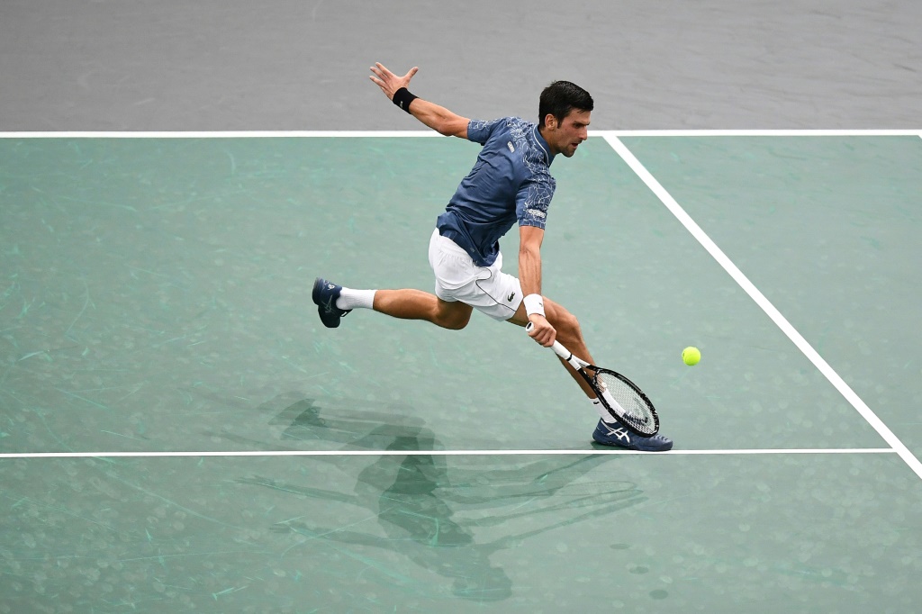 - © 2018 AFP | Crée le 01.11.2018 à 04h05 | Mis à jour le 01.11.2018 à 04h10ImprimerLe Serbe Novak Djokovic face au Portugais Joao Sousa lors du 2e tour du Masters 1000 de Paris, le 30 octobre 2018 Anne-Christine POUJOULAT -AFP