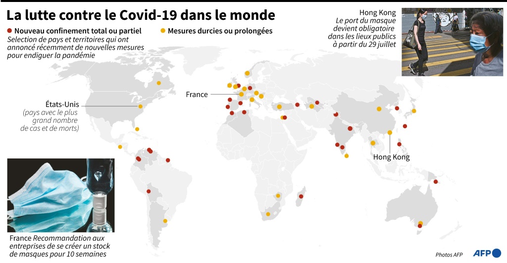 - © 2020 AFP | Crée le 28.07.2020 à 03h47 | Mis à jour le 28.07.2020 à 03h50ImprimerLa lutte contre le Covid-19 dans le monde Romain ALLIMANT-AFP