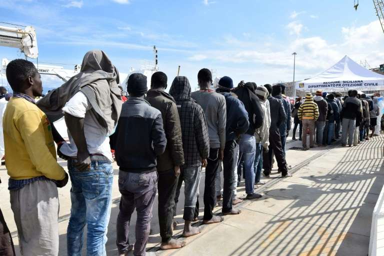 - © 2016 AFP | Crée le 15.04.2016 à 21h26 | Mis à jour le 15.04.2016 à 21h30ImprimerDes migrants arrivent au port de Messina, après une opération de sauvetage par les gardes-côtes italiens, le 17 mars 2016 en Sicile GIOVANNI ISOLINO-AFP/Archives