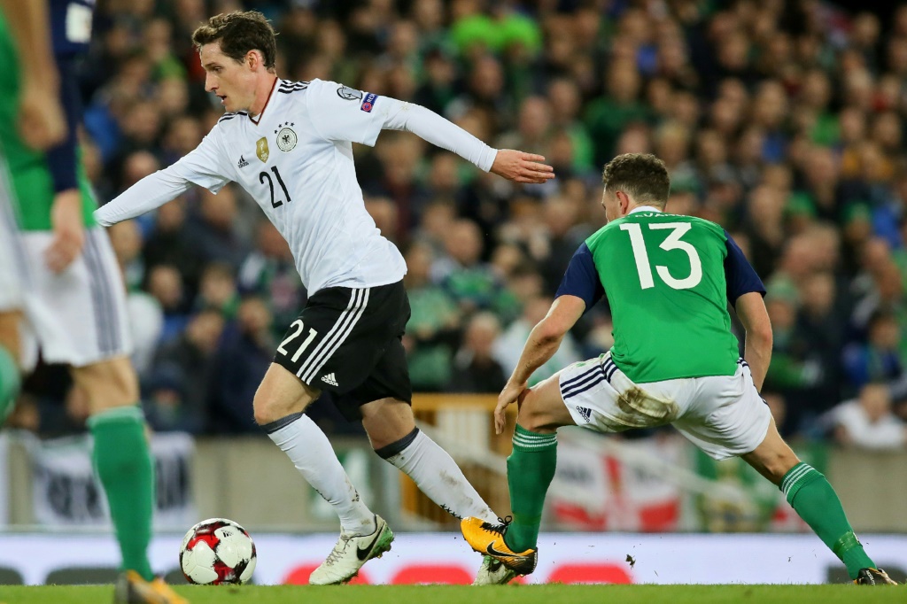Les Allemands ont marqué par Sebastian Rudy (2e), Sandro Wagner (21e) et Joshua Kimmich (86e). Magennis a sauvé l'honneur dans le temps additionnel (90+3). Ils se sont qualifiés en remportant leurs 9 matches déjà joués en éliminatoire, marquant 38 buts en n'en concédant que trois.