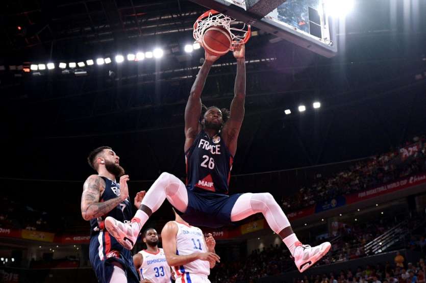 - © 2019 AFP | Crée le 06.09.2019 à 02h35 | Mis à jour le 06.09.2019 à 02h40ImprimerL'intérieur français Mathias Lessort monte au dunk contre l'équipe dominicaine dans le group G du Mondial à Shenzhen, le 5 septembre 2019 Nicolas ASFOURI-AFP