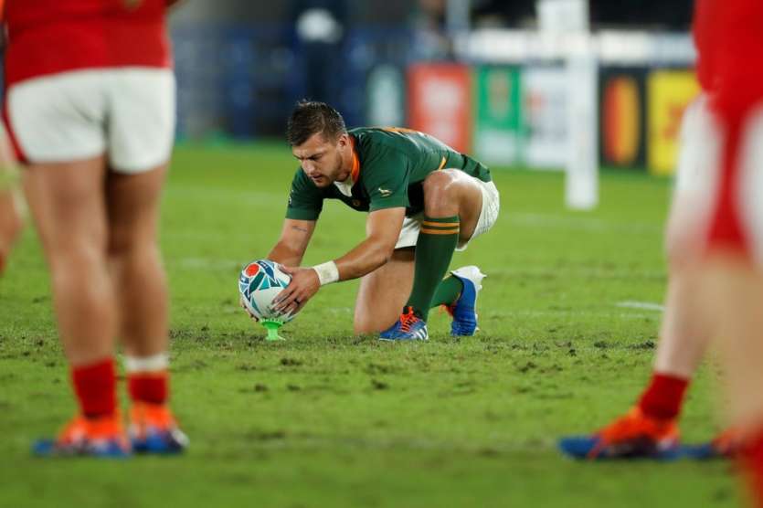 - © 2019 AFP | Crée le 27.10.2019 à 22h14 | Mis à jour le 27.10.2019 à 22h15ImprimerLe demi d'ouverture des Springboks Handré Pollard se prépare à frapper une pénalité contre les Gallois en demies du Mondial, le 27 octobre 2019 à Yokohama Odd Andersen-AFP