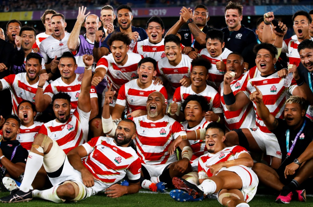 - © 2019 AFP | Crée le 14.10.2019 à 00h53 | Mis à jour le 14.10.2019 à 00h55ImprimerPhoto de groupe des Japonais après leur qualification en quarts de la Coupe du monde, à Yokohama, le 13 octobre 2019 Odd ANDERSEN-AFP