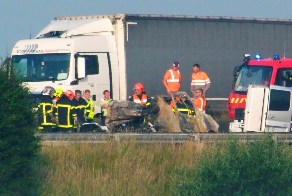 - © 2017 AFP | Crée le 22.06.2017 à 16h40 | Mis à jour le 22.06.2017 à 16h45ImprimerLes secours sur le site d'un accident mortel provoqué par un barrage de migrants, le 20 juin 2017 sur l'autoroute A16 à hauteur de Guemps, à 15 km à l'est de Calais Sebastien FOISSEL-AFP