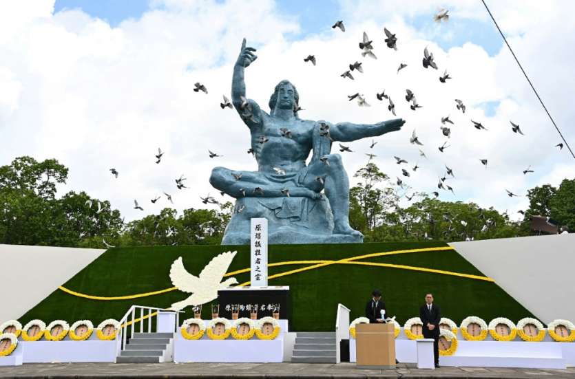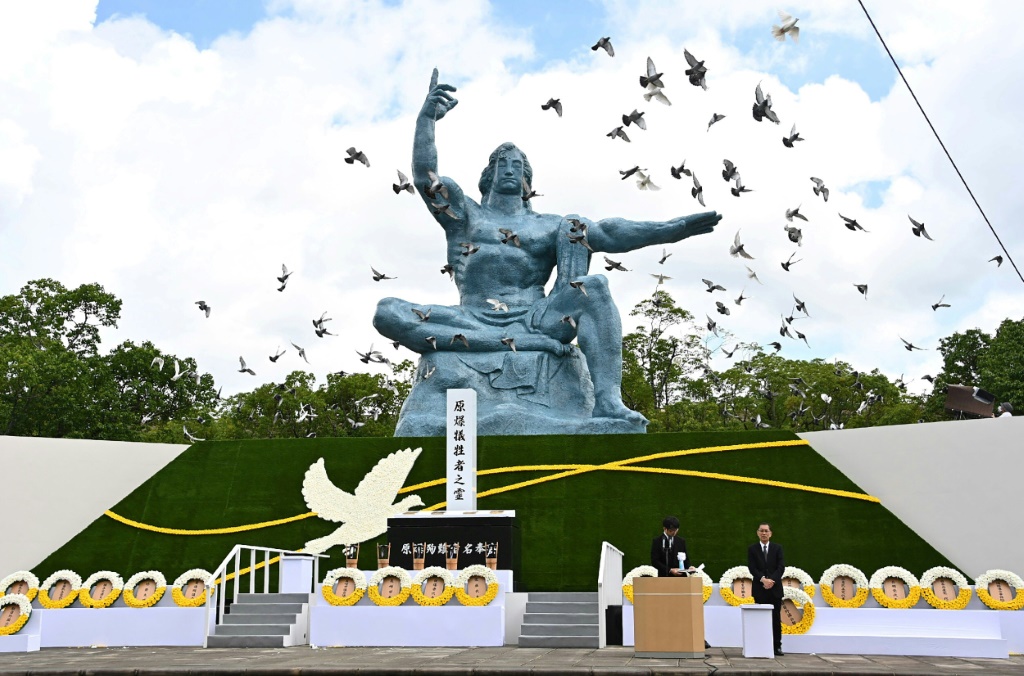 - © 2020 AFP | Crée le 09.08.2020 à 16h05 | Mis à jour le 09.08.2020 à 16h10ImprimerCérémonie du 75e anniversaire de la bombe atomique de Nagasaki, le 9 août 2020 JAPAN POOL VIA JIJI PRESS-JIJI PRESS/AFP