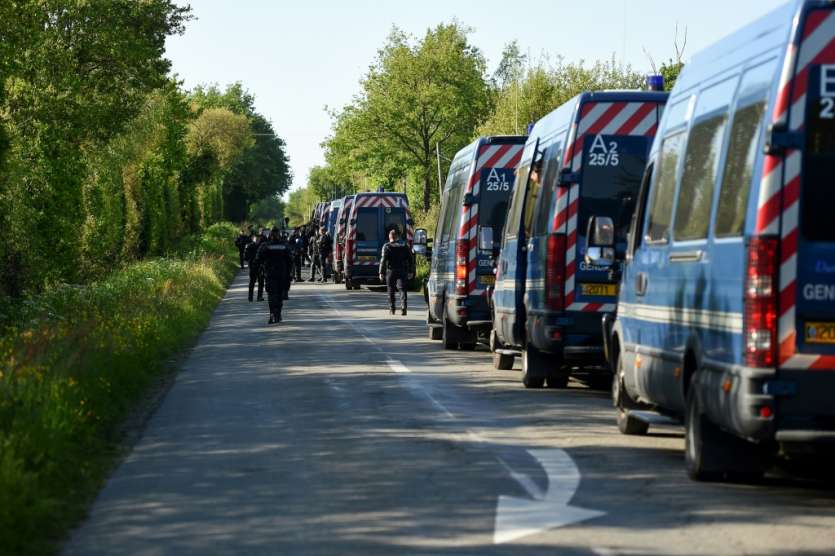 - © 2018 AFP | Crée le 19.05.2018 à 01h27 | Mis à jour le 19.05.2018 à 01h30ImprimerLes gendarmes mobiles sur la ZAD de Notre-Dame-des-Landes près de Nantes, le 18 mai 2018 GUILLAUME SOUVANT-AFP