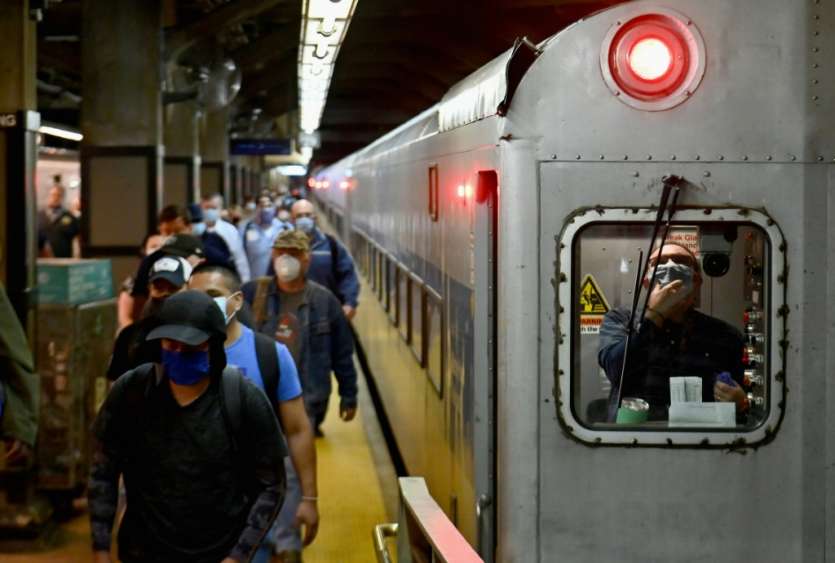 - © 2020 AFP | Crée le 09.06.2020 à 08h51 | Mis à jour le 09.06.2020 à 08h55ImprimerDes voyageurs sortent d'une rame de métro à la station de Grand Central, à Manhattan, le 8 juin 2020, première jour du début de déconfinement à New York Angela Weiss-AFP