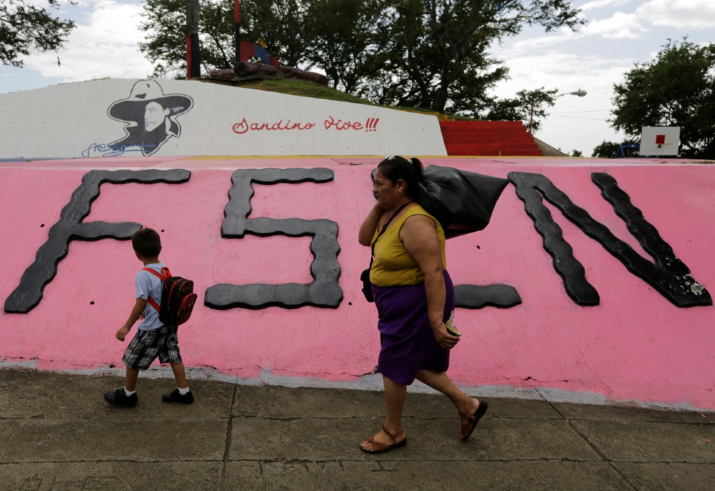 - © 2018 AFP | Crée le 20.07.2018 à 06h19 | Mis à jour le 20.07.2018 à 06h20ImprimerUne femme et un enfant marche devant un monument à la mémoire du révolutionnaire Augusto C. Sandino, à Managua, le 17 juillet 2018 Inti OCON-AFP/Archives