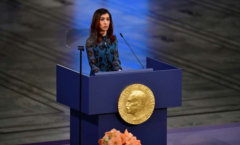 - © 2018 AFP | Crée le 11.12.2018 à 00h03 | Mis à jour le 11.12.2018 à 00h14ImprimerL'activiste irakienne yazidi Madia Murad le 10 décembre 2018 à Oslo lors de la remise du Prix Nobel de la paix. Tobias SCHWARZ-AFP