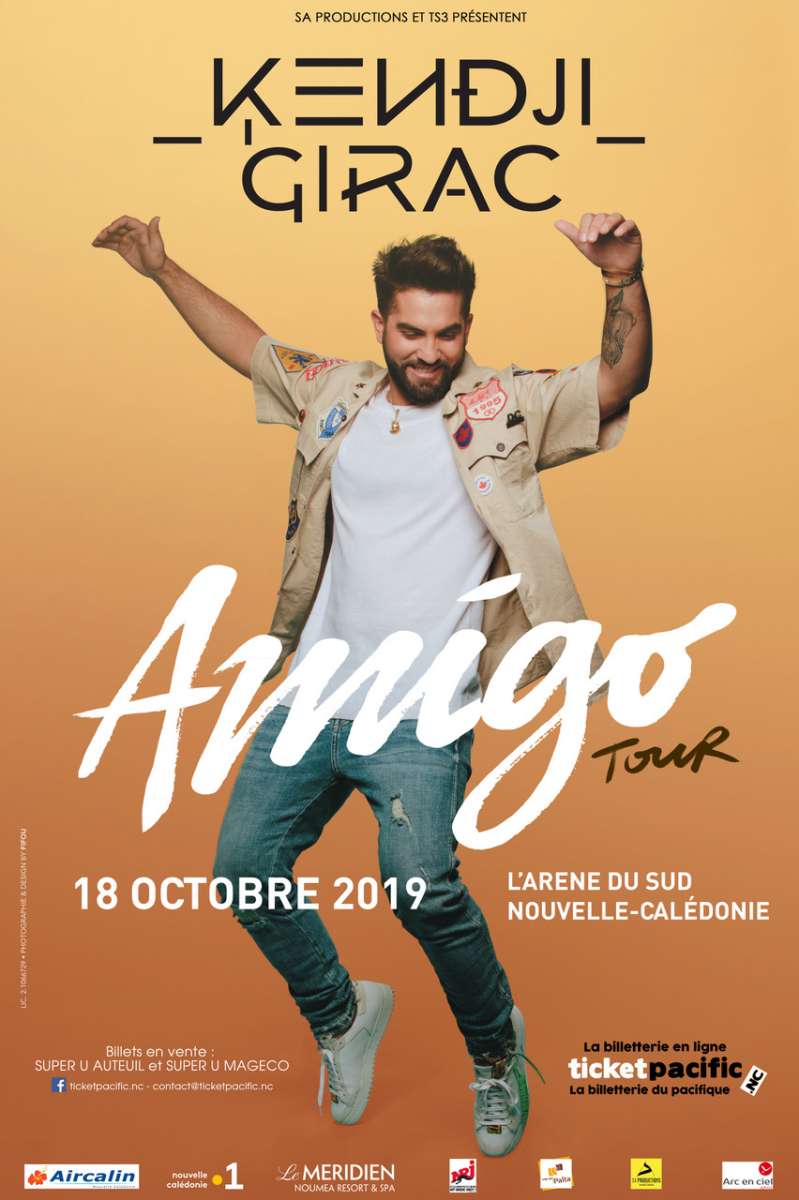 «L'Amigo Tour» de Kendji Girac fera étape en Nouvelle-Calédonie pour un concert unique le 18 octobre prochain, à l'Arène du Sud de Païta. La billeterie est ouverte dès à présent sur www.ticket-pacific.nc et dans les magasins Super U Auteuil et Super U Mageco.