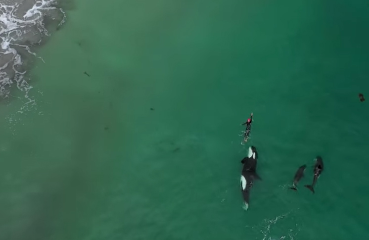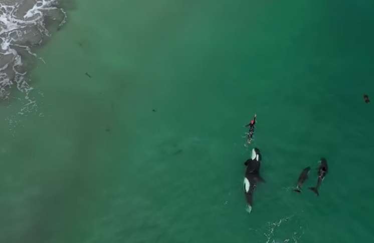 Le photographe explique qu'il regardait un groupe d'orques nager le long de la côte avant de constater que les mammifères marins ont encerclé une nageuse. Il semblerait alors que cette dernière ait eu « très peur ». Elle est ensuite sortie de l'eau, n'étant qu'à une vingtaine de mètres du rivage… avant de retourner près des orques… C'est à ce moment-là que le photographe a immortalisé la scène à l'aide de son drone…