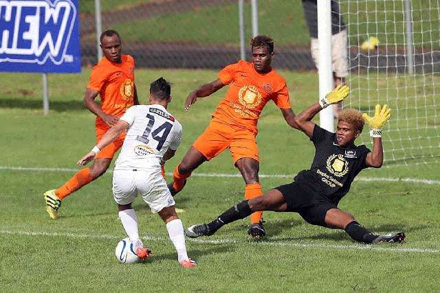 - | Crée le 12.03.2017 à 11h45 | Mis à jour le 12.03.2017 à 11h45ImprimerAnthony Talo, le gardien de but de Western United (Salomon), se jette pour sauver son but. Auckland City ne marquera pas sur cette attaque. OFC via Phototek