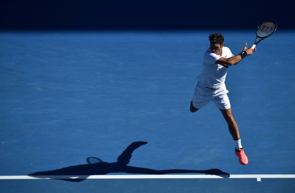 - © 2018 AFP | Crée le 22.01.2018 à 17h47 | Mis à jour le 22.01.2018 à 17h50ImprimerLe Suisse Roger Federer lors de son 8e de finale victorieux face au Hongrois Marton Fucsovics à l'Open d'Australie, le 22 janvier 2018 à Melbourne PETER PARKS-AFP