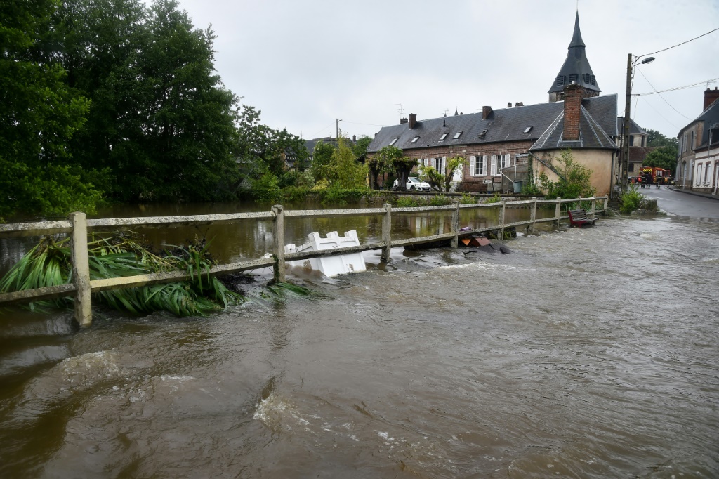 - © 2018 AFP | Crée le 06.06.2018 à 15h31 | Mis à jour le 06.06.2018 à 15h35ImprimerUne rue inondée à Breteuil dans l'Eure, le 5 juin 2018 JEAN-FRANCOIS MONIER -AFP