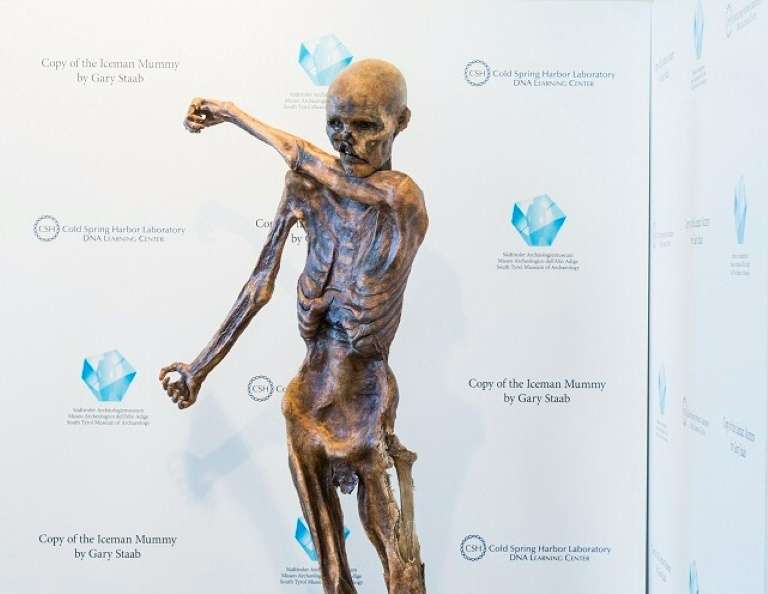 - © 2016 AFP | Crée le 21.04.2016 à 08h40 | Mis à jour le 21.04.2016 à 08h45ImprimerCette photographie fournie le 20 avril 2016 par le musée archéologique du Tyrol du sud à Bolzano, en Italie, montre Une réplique grandeur nature d'Ötzi, l'homme des glaces de 5.300 ans, dont le corps momifié a été trouvé dans les Alpes en 1991 HAND OUT-foto-dpi.com/AFP