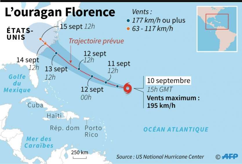 - © 2018 AFP | Crée le 11.09.2018 à 23h17 | Mis à jour le 11.09.2018 à 23h20ImprimerL'ouragan Florence AFP -AFP