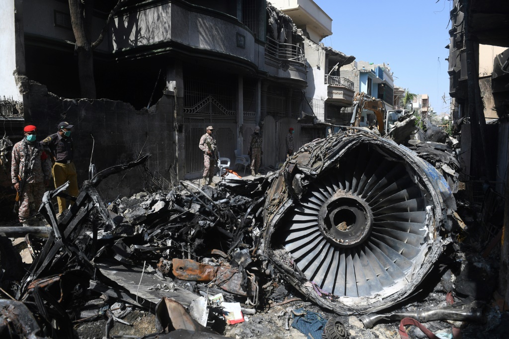 - © 2020 AFP | Crée le 24.06.2020 à 23h07 | Mis à jour le 24.06.2020 à 23h10ImprimerLes débris de l'A320 de la compagnie pakistanaise après le crash à Karachi, le 24 mai 2020 Asif HASSAN-AFP/Archives
