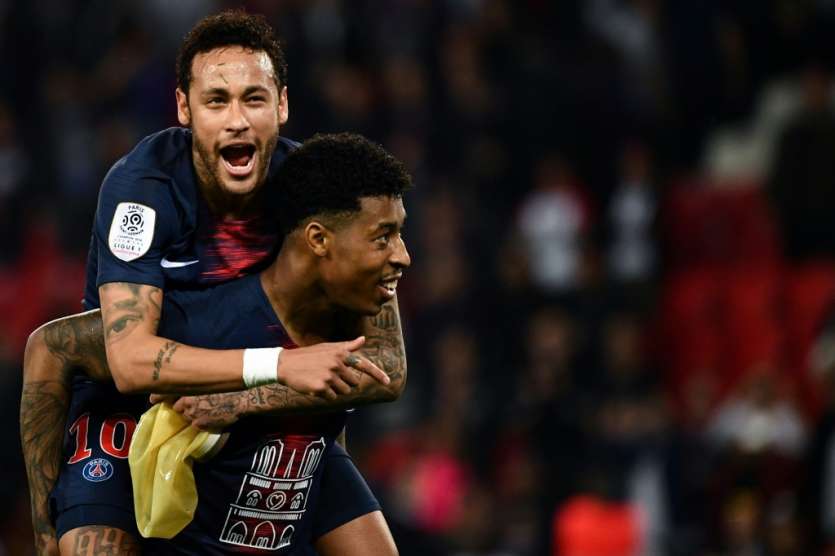 - © 2019 AFP | Crée le 22.04.2019 à 20h21 | Mis à jour le 22.04.2019 à 20h25ImprimerLa joie de l'attaquant du PSG Neymar juché sur les épaules du défenseur Presnel Kimpembé après la victoire contre Monaco au Parc des Princes, le 21 avril 2019 Anne-Christine POUJOULAT-AFP